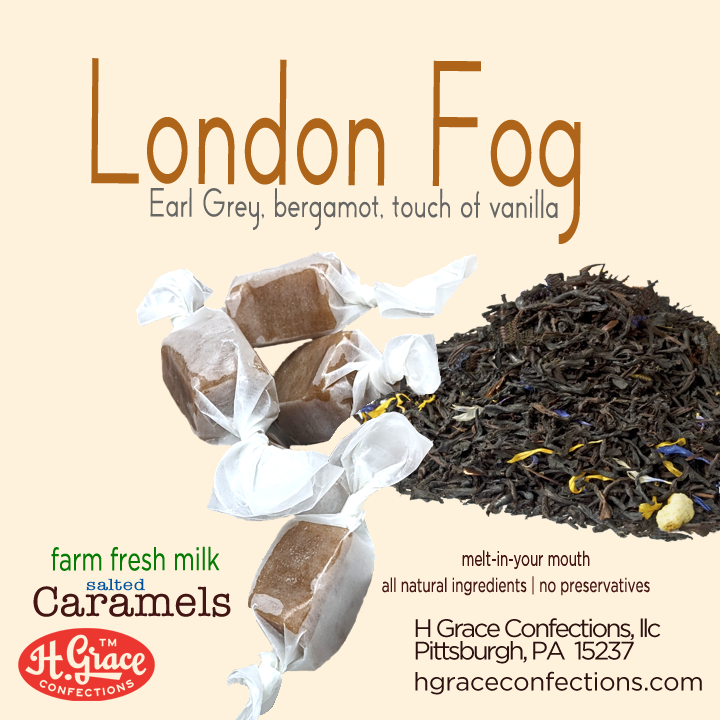 Earl Grey, Bergamot, finish with natural vanilla, is our London Fog of Pittsburgh Caramel.