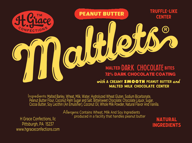 MALTLETS® PEANUT BUTTER is a Creamy Smooth Malted Milk Chocolate and Peanut Butter Decadent Center. Coated in a Velvety 72% Dark Chocolate, with Natural Vanilla.
